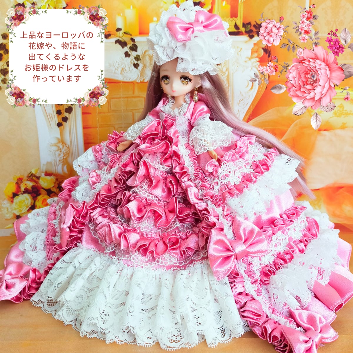 送料無料 リカちゃんサイズ 王妃様ドレス 22㎝ドール服 ピンクのドレス ロココ調ドレス マリーアントワネットの世界 ハンドメイド服 ドール服 人形服 ドールドレス ⁑クイーン・アリス⁑ | Doll Dress Shop Riko