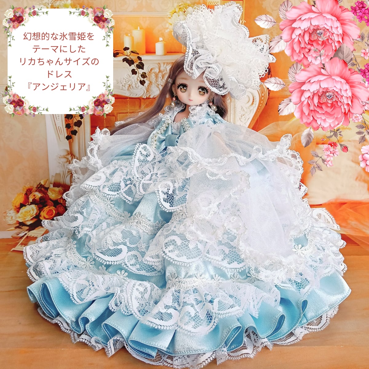 送料無料 リカちゃんサイズ ドレス アイスブルー 22㎝ドール服 氷雪姫 お姫様ドレス ウェディングドレス ドール服 ⁑アンジェリア⁑