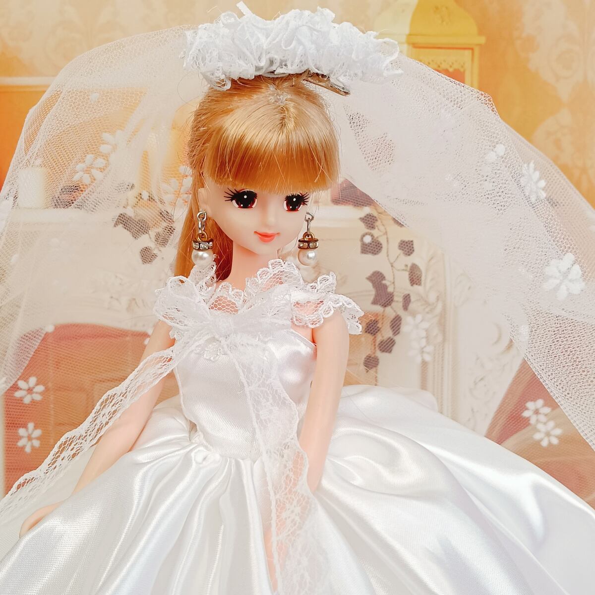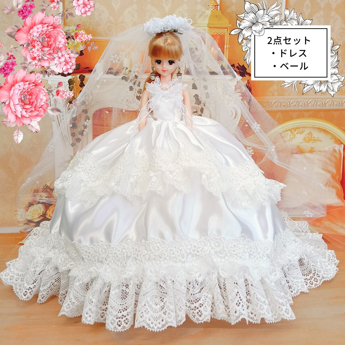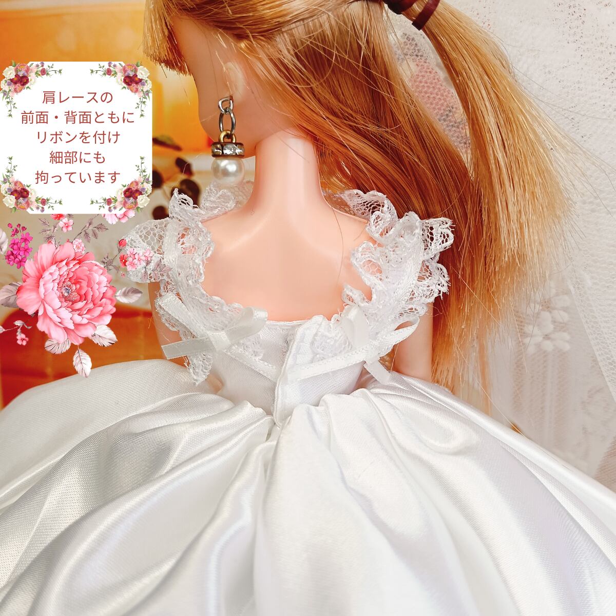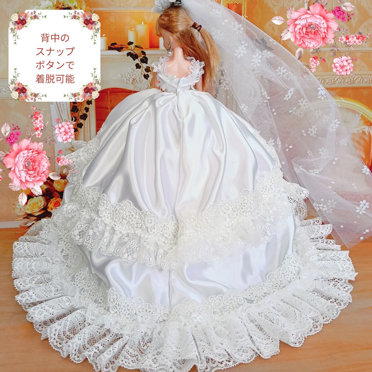 ジェニーサイズ ウェディングドレス ロングトレーン ベール 手作り ドール服 ドールドレス ブライダルドレス ⁑アビー⁑