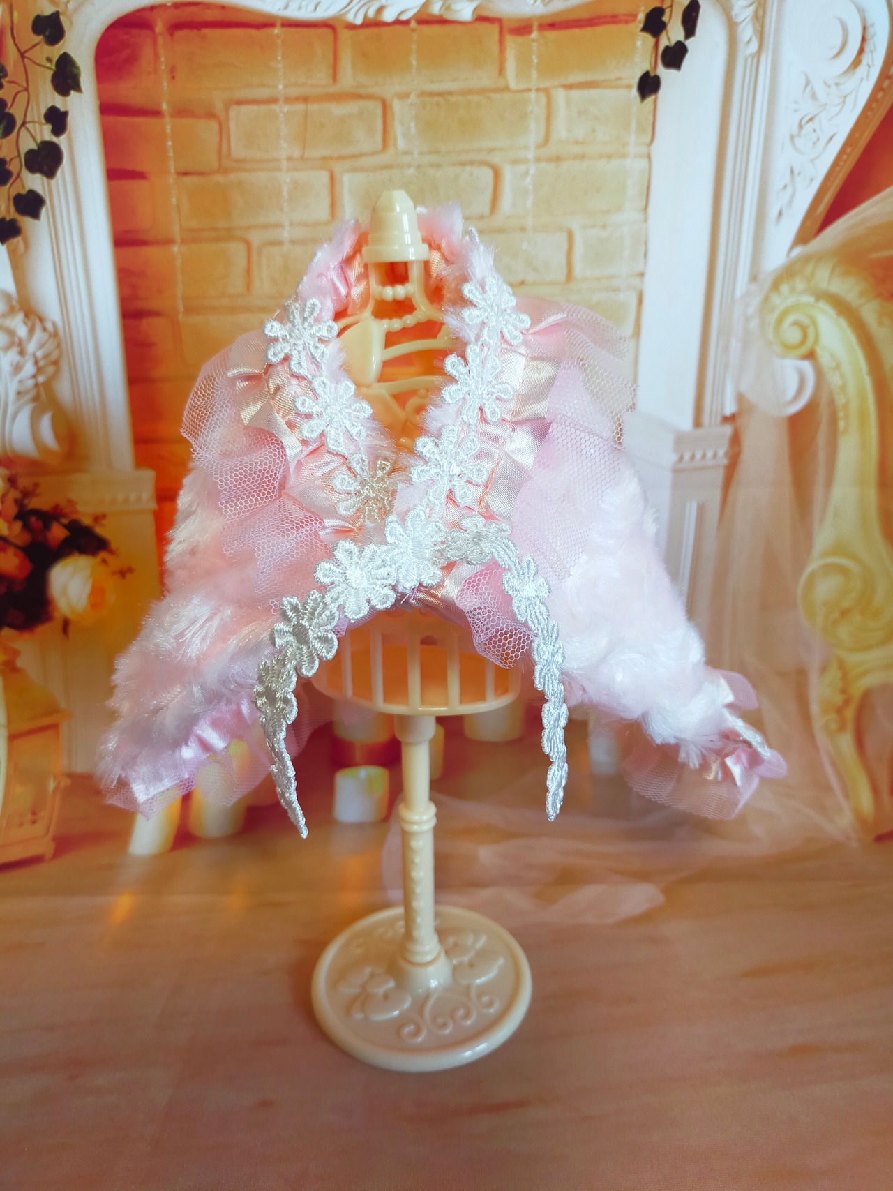 ピンク・プリュームとふわふわショールのセット フリルたっぷりのピンクドールドレス
