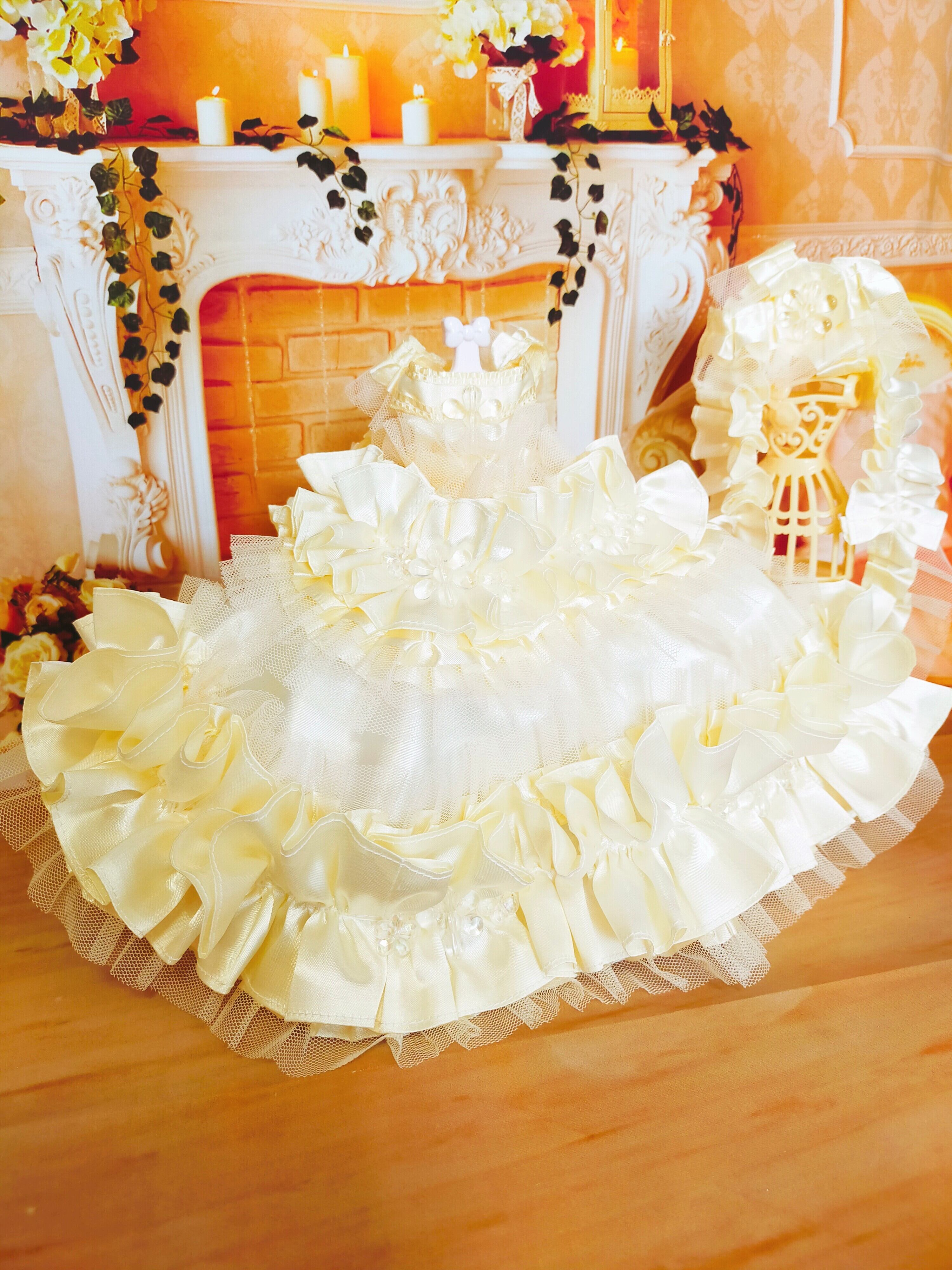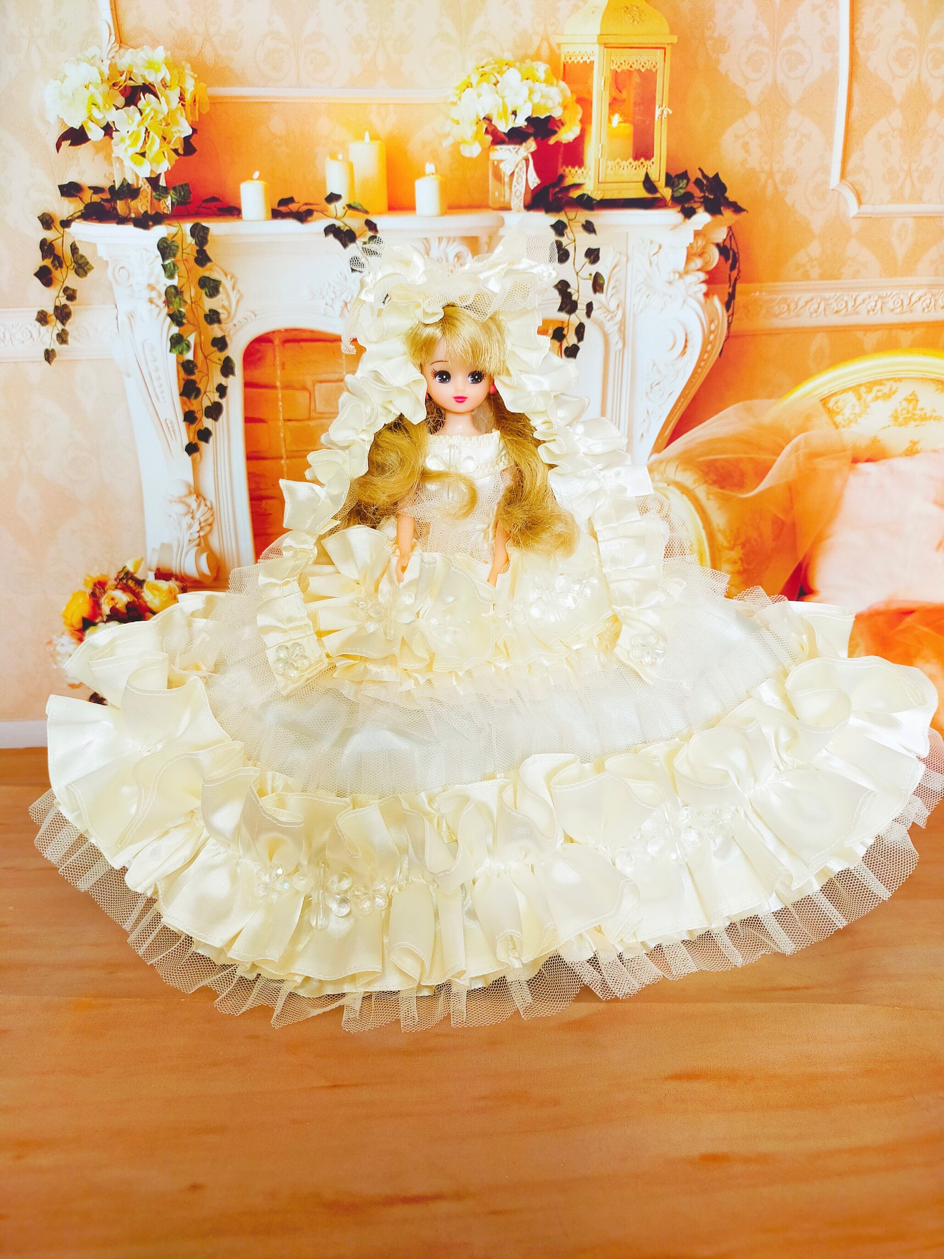 #フリル#レース#プリンセスドレス#リカちゃんドレス#着せ替え人形#お姫様ドレス#クリーム色#ベージュゴールド#シャンパンゴールド