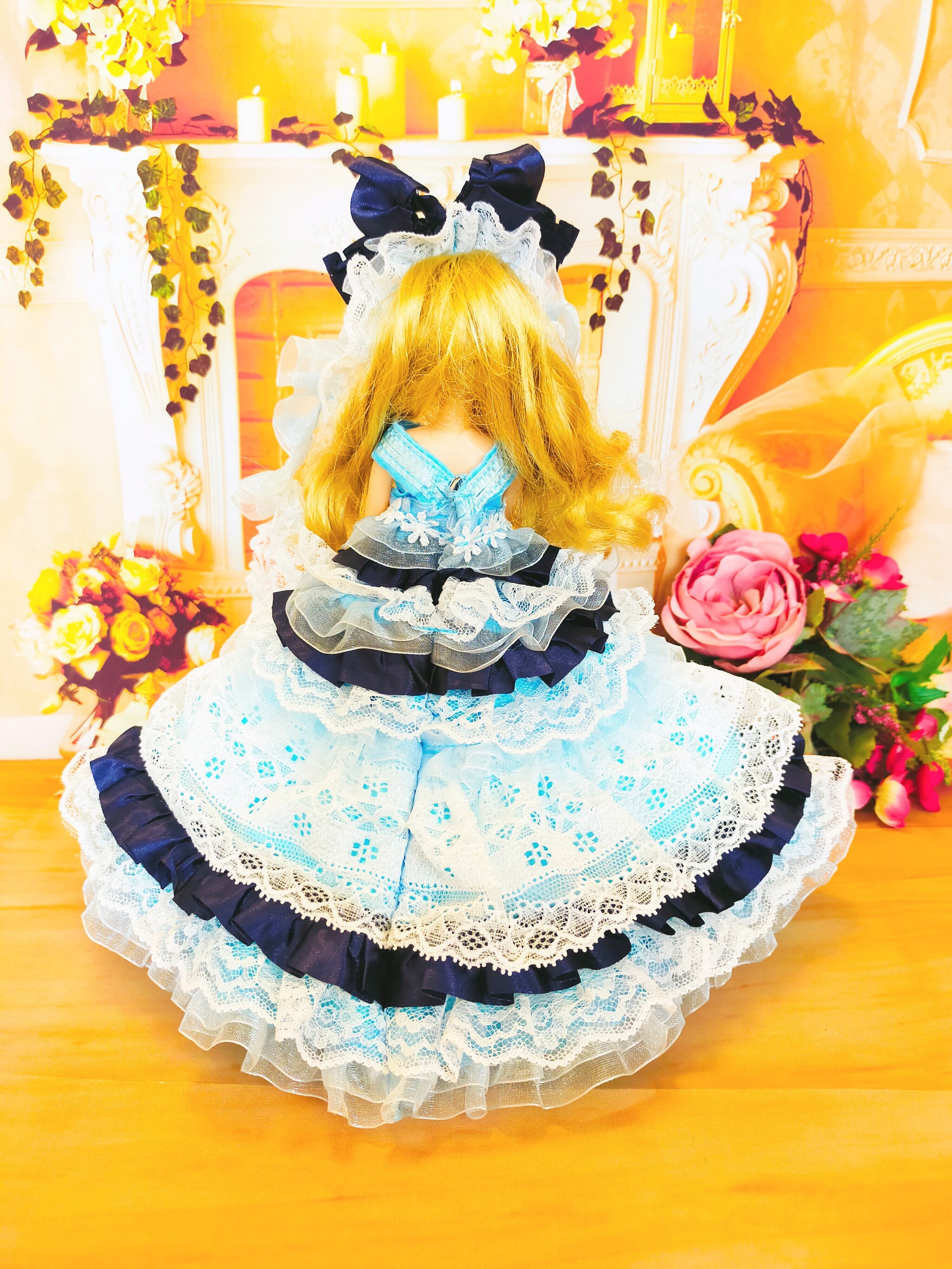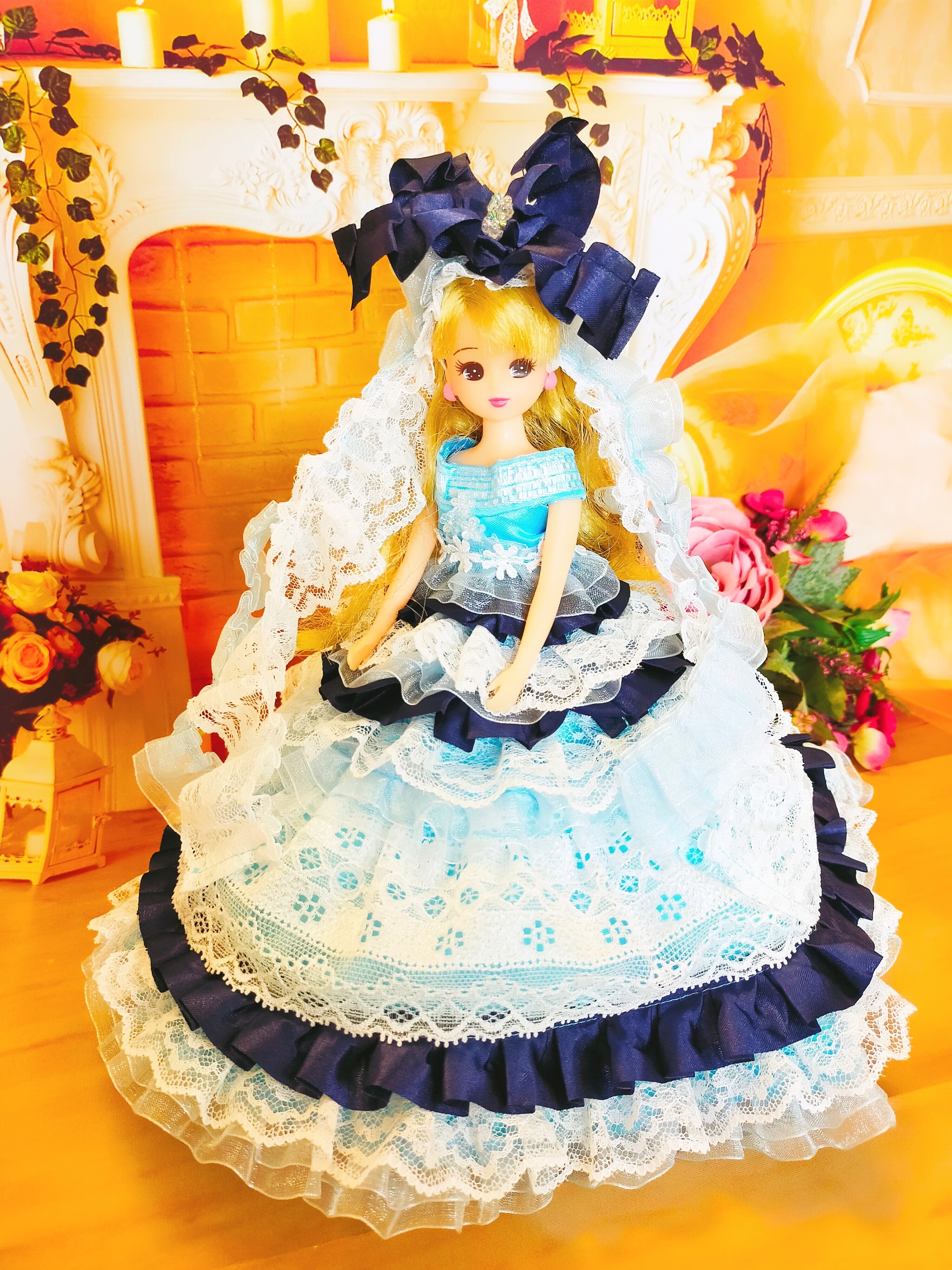 リカちゃんサイズ レースたっぷりのプリンセスドレス ブルー・アンジュ
