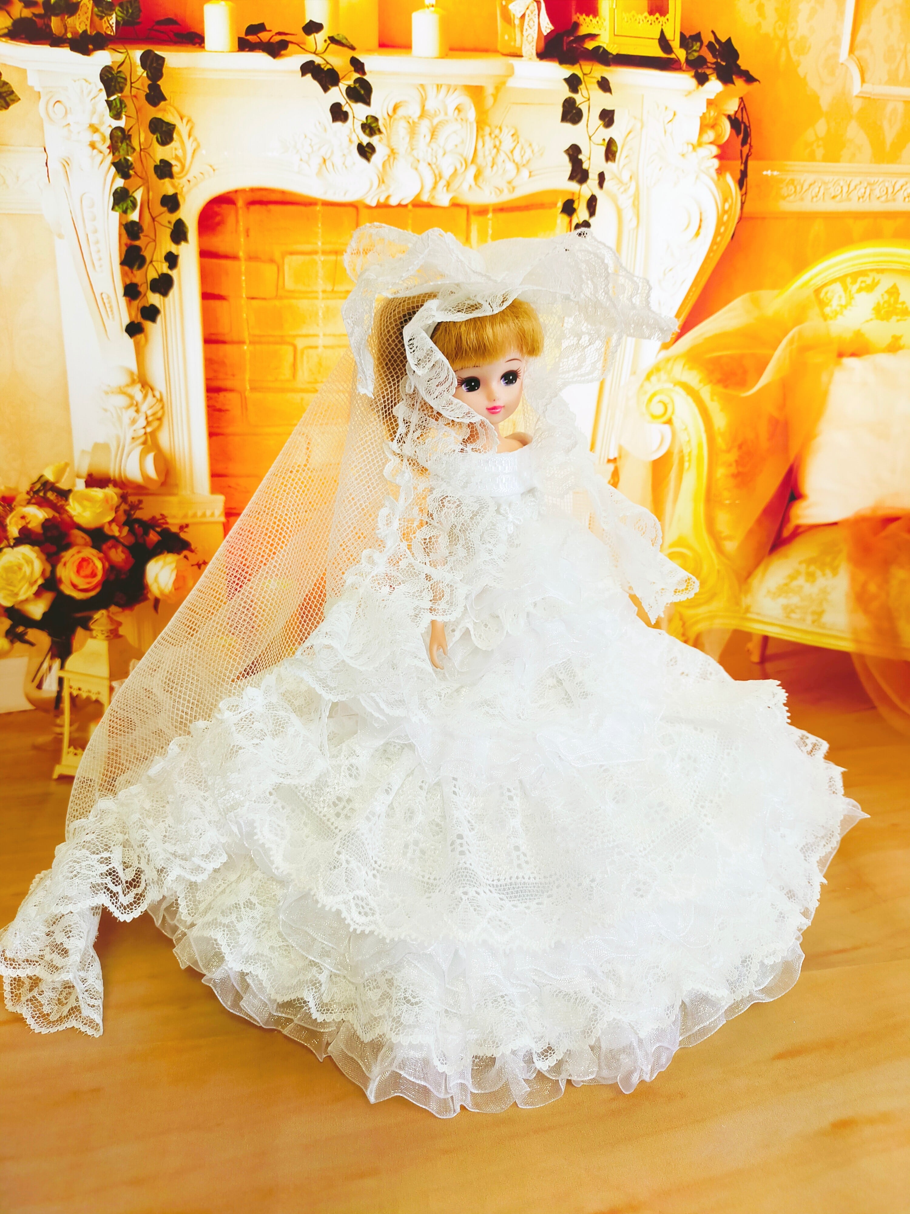 #リカちゃん人形服#フリル#レース#プリンセスドレス#リカちゃんドレス#着せ替え人形#お姫様ドレス#ウェディングドレス#リカちゃんウェディングドレス