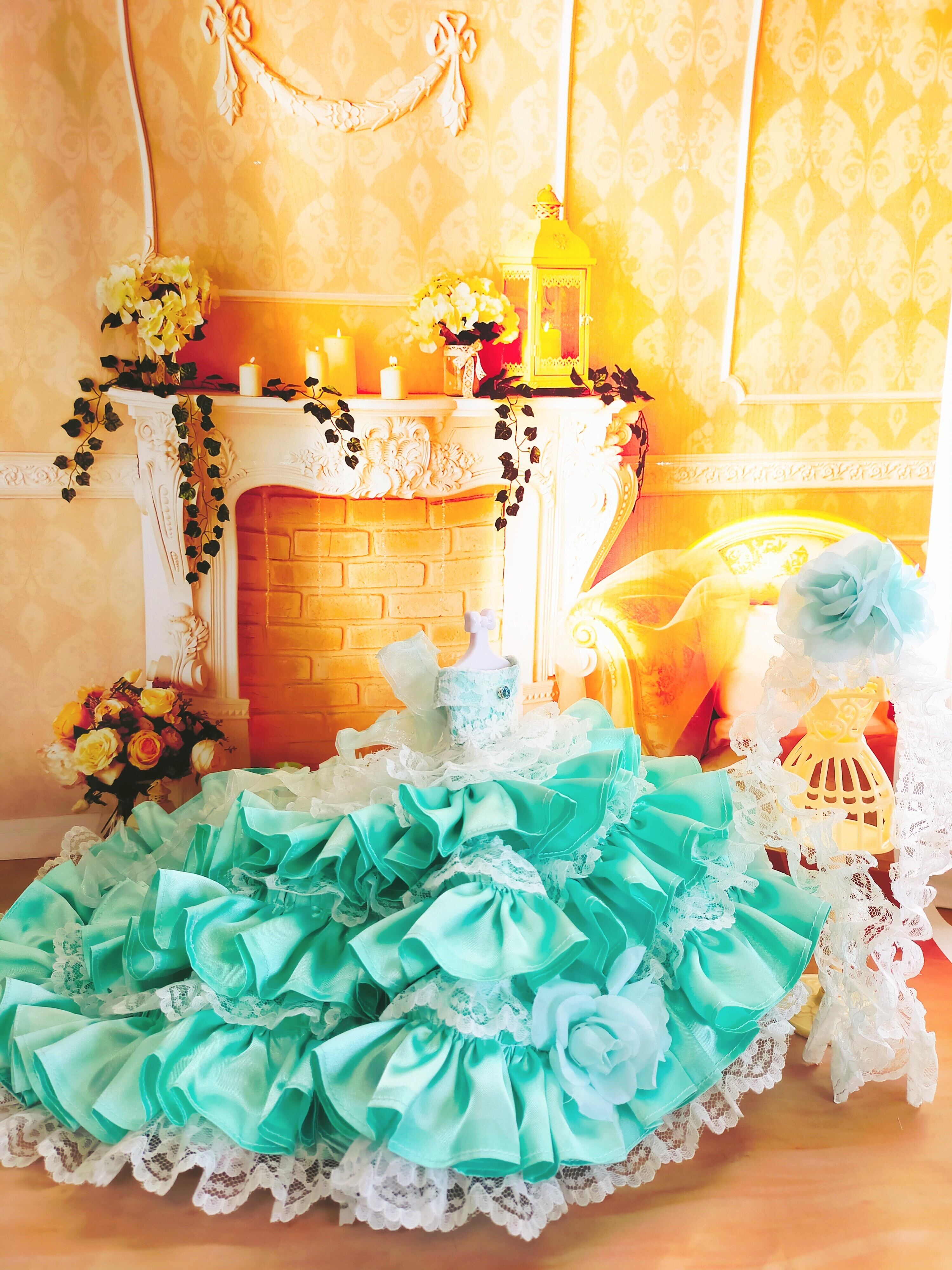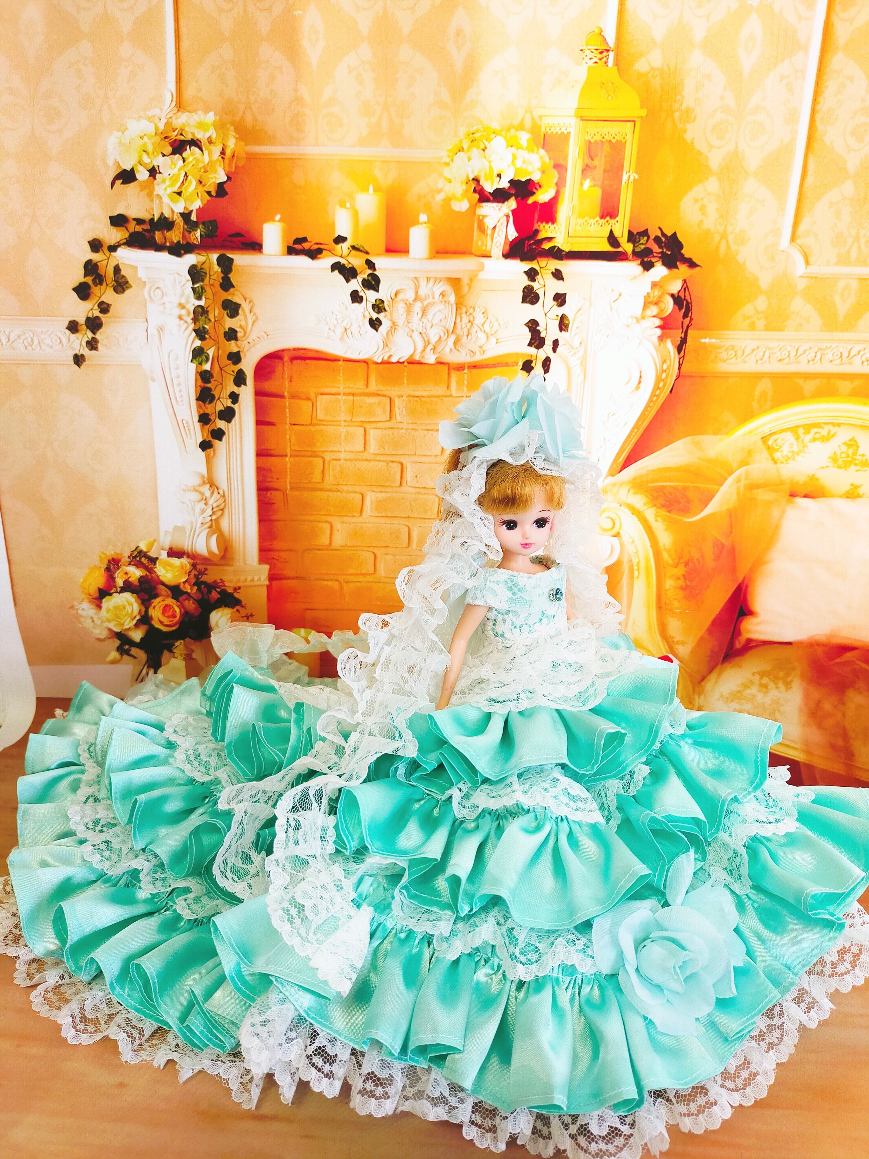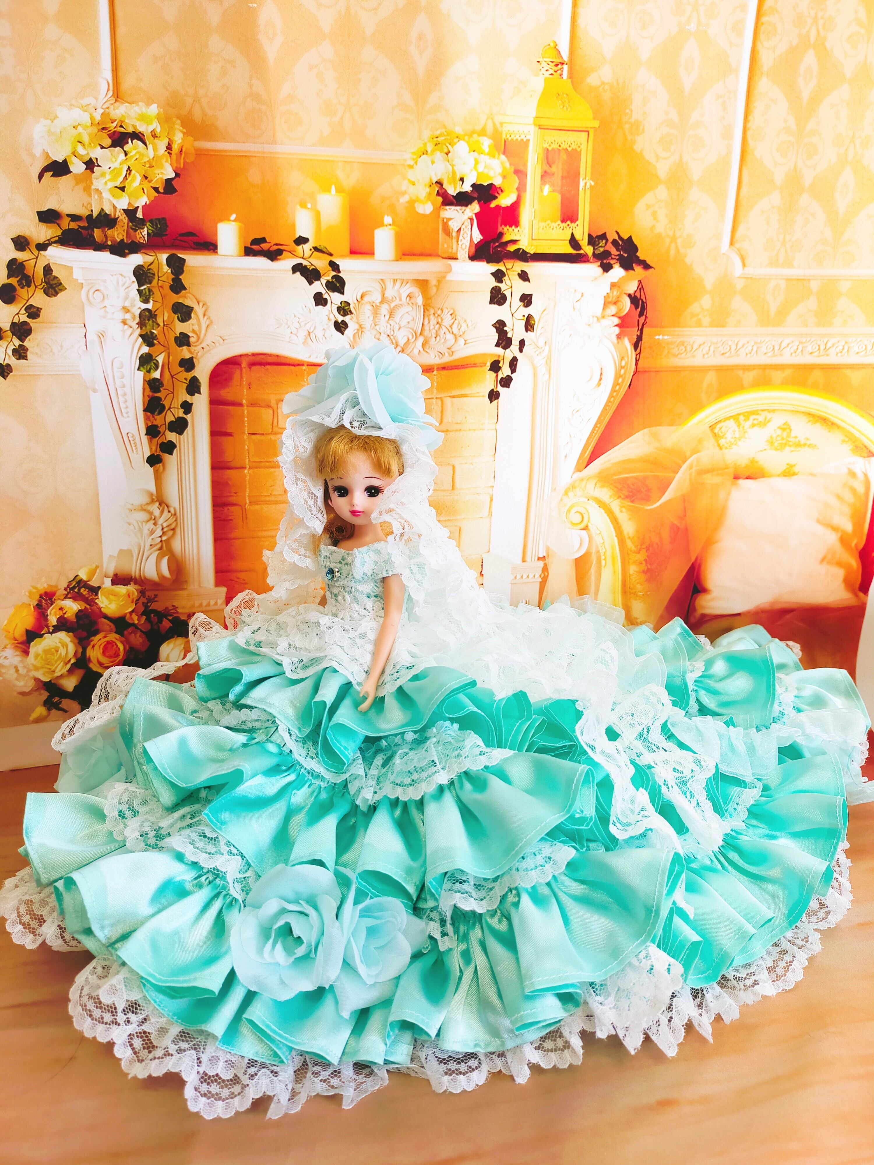 #フリル#レース#プリンセスドレス#リカちゃんドレス#着せ替え人形#お姫様ドレス#グリーン#エメラルドグリーン
