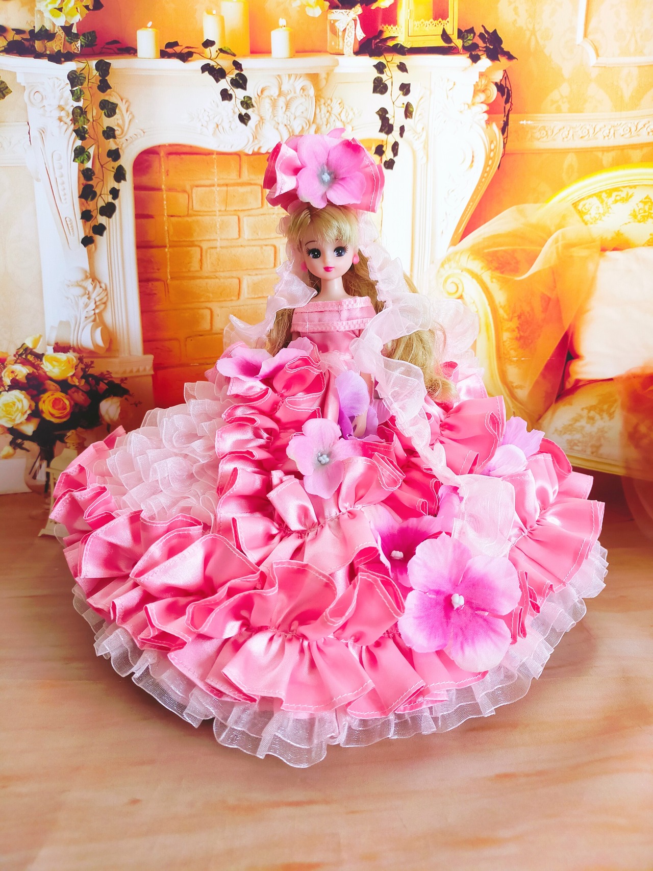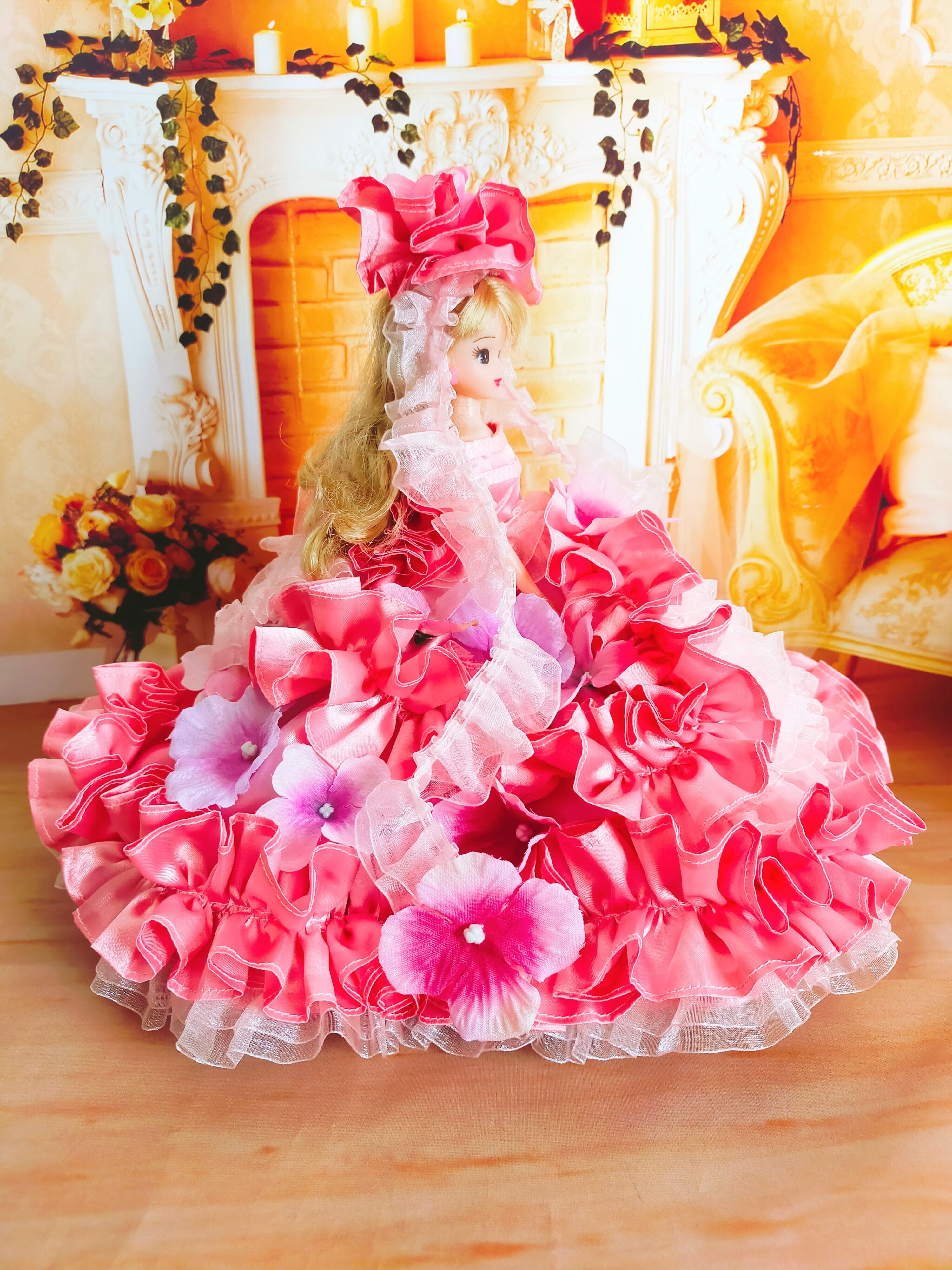 #リカちゃん人形服#フリル#レース#プリンセスドレス#リカちゃんドレス#着せ替え人形#お姫様ドレス#ピンク#花束#ブーケ#フラワー