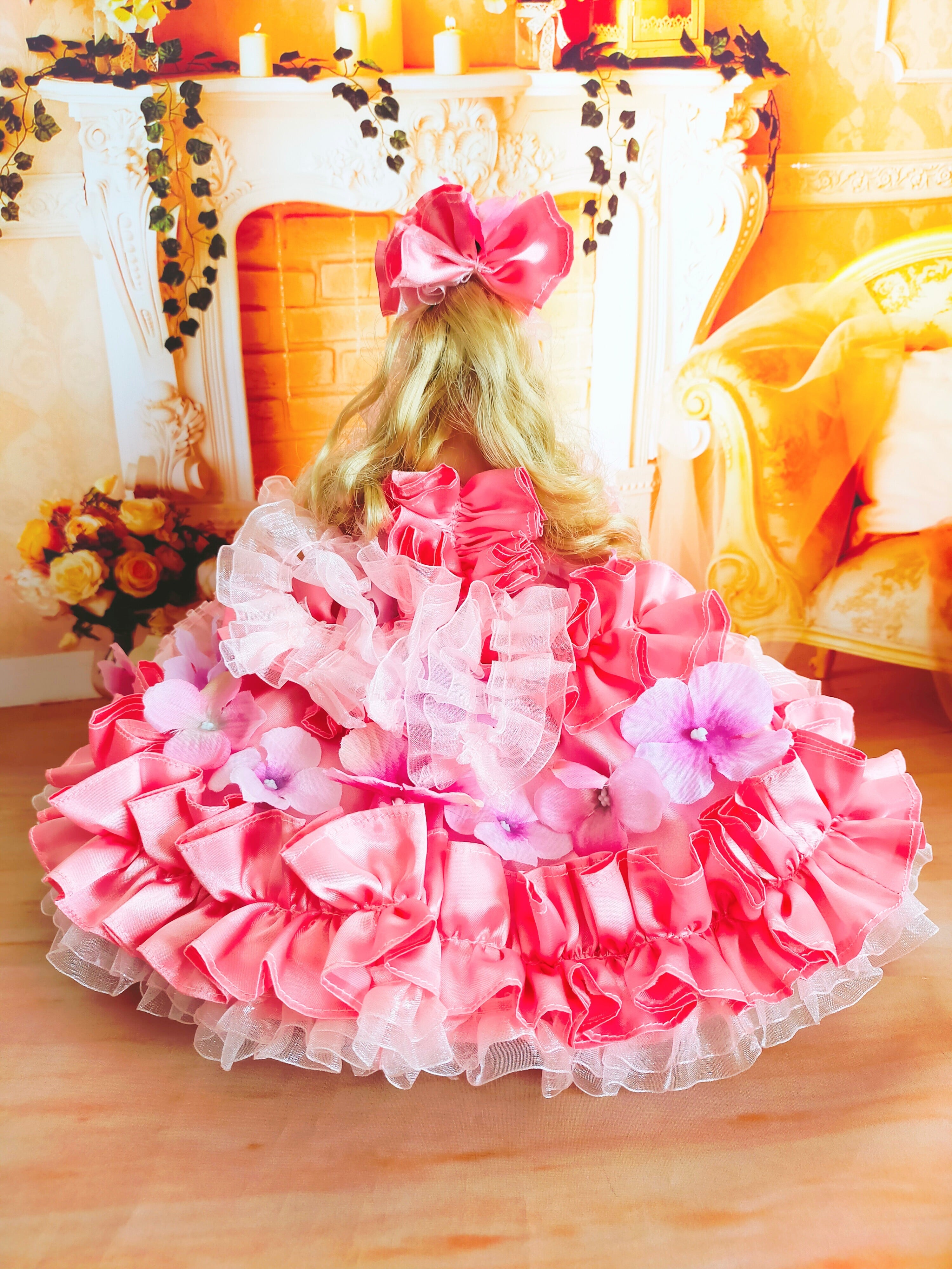 艶のあるピンクの生地で作ったブーケの様なドレス♡