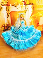 ウォータークラウン 清楚で華やかな水色のドールドレス リカちゃんサイズ