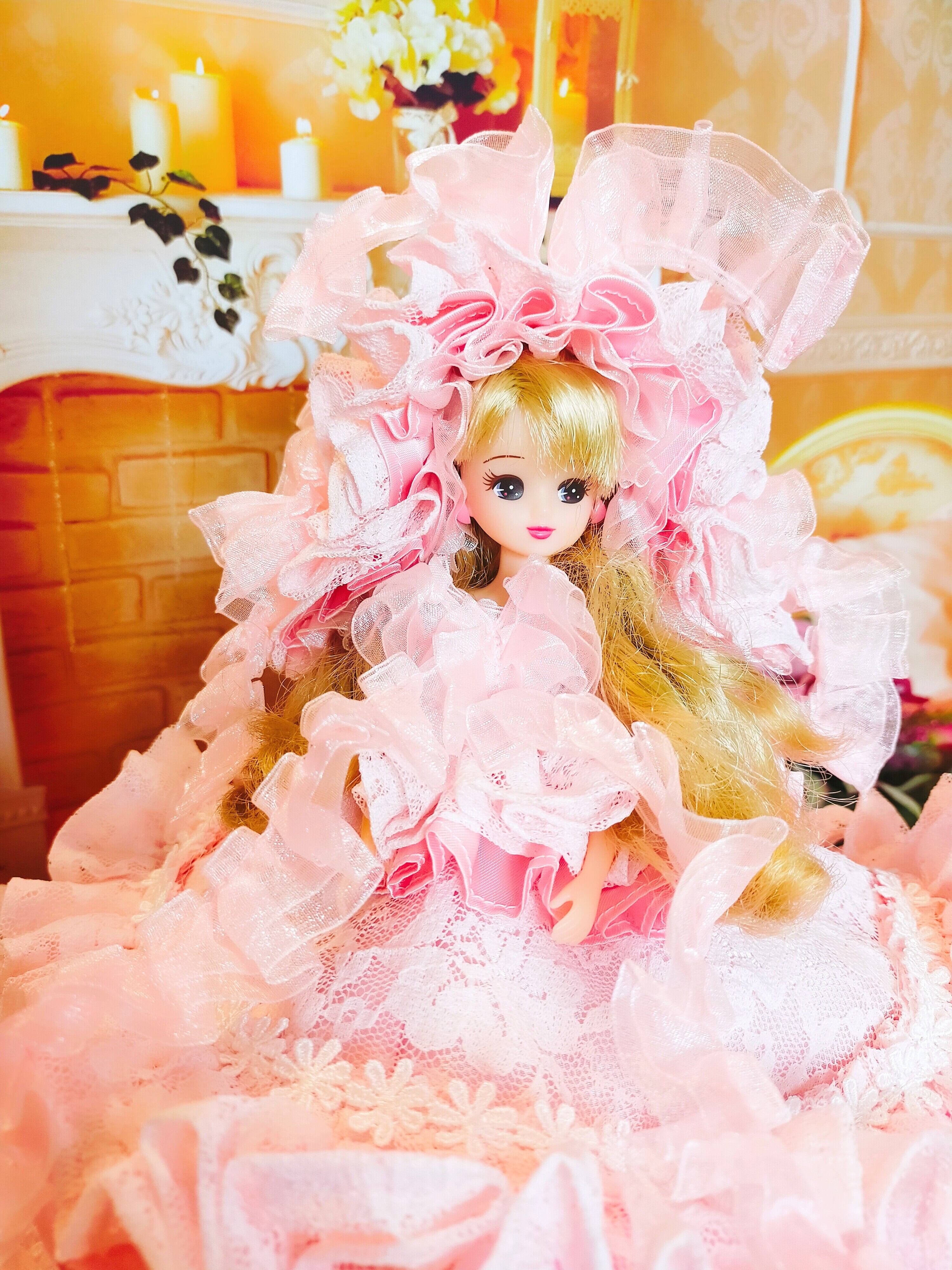 リカちゃんサイズ ピンクレースとフリルのプリンセスドレス ピンク・ラデュ