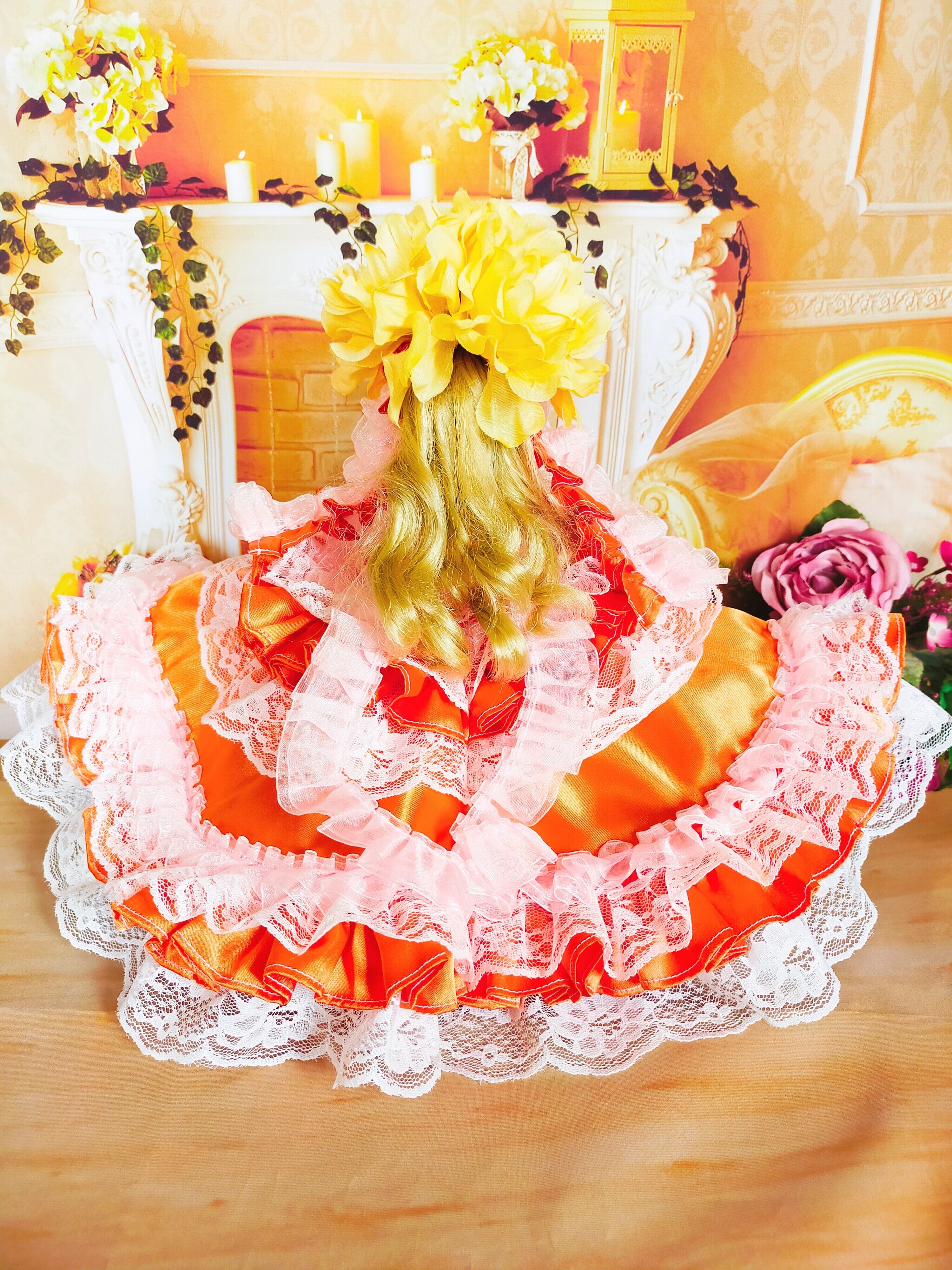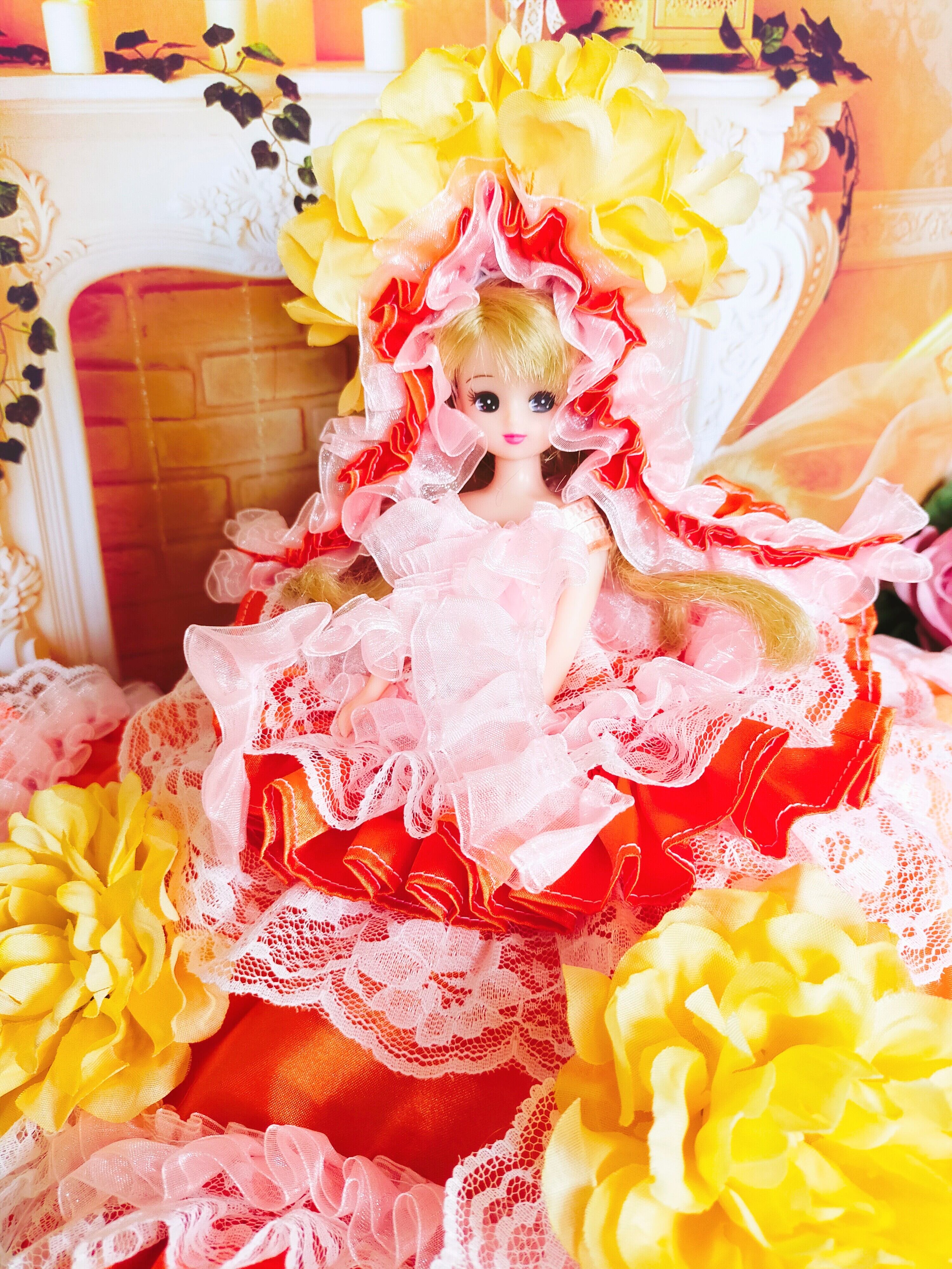 リカちゃんサイズ 鮮やかなオレンジ色のプリンセスドレス グラース・オランジュ ♡♡贈答品にも♡♡