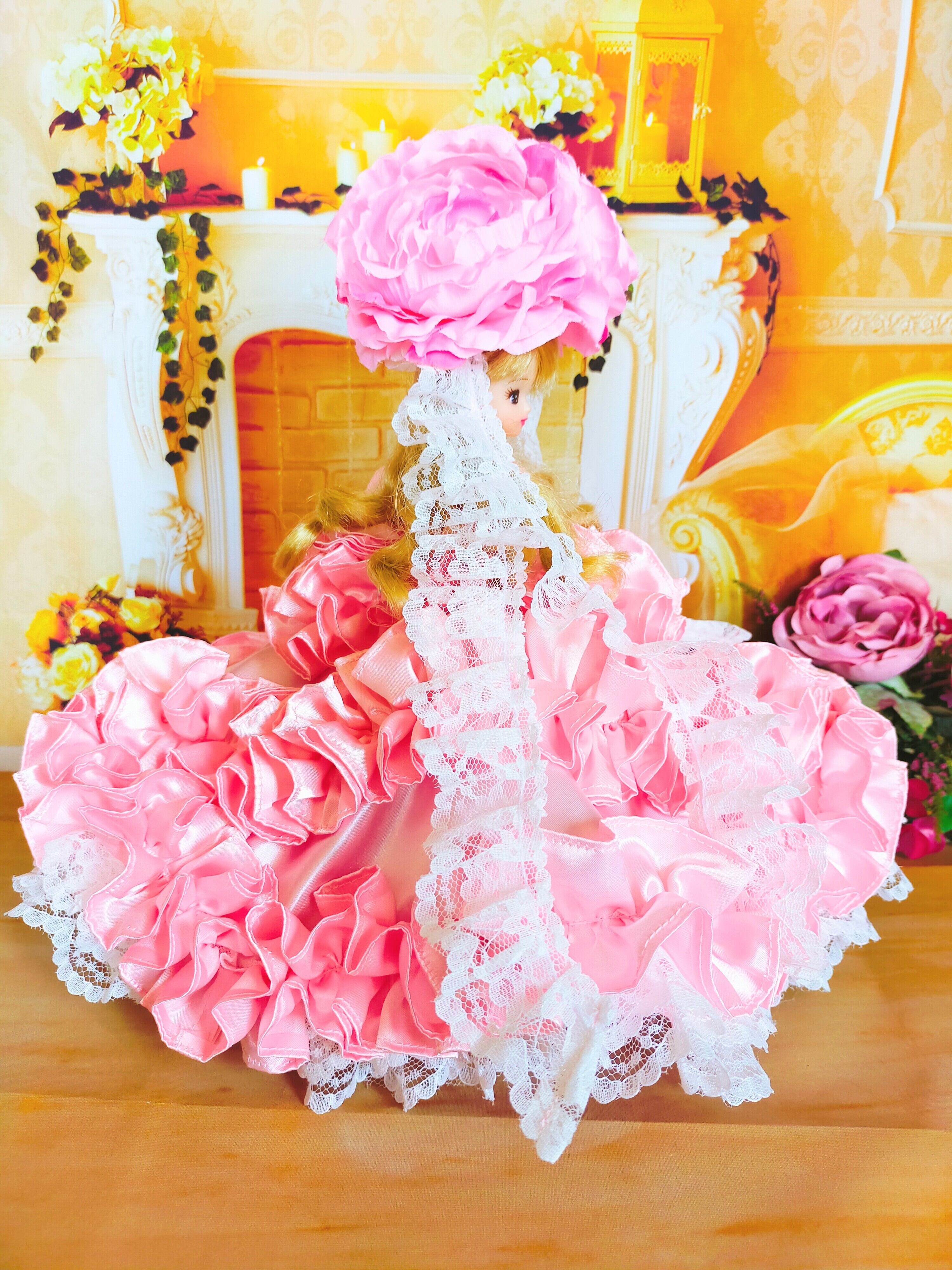リカちゃんサイズ 花のヘッドドレスと淡いピンクのプリンセスドレス ヴェリテ・ローズ ♡♡贈答品にも♡♡