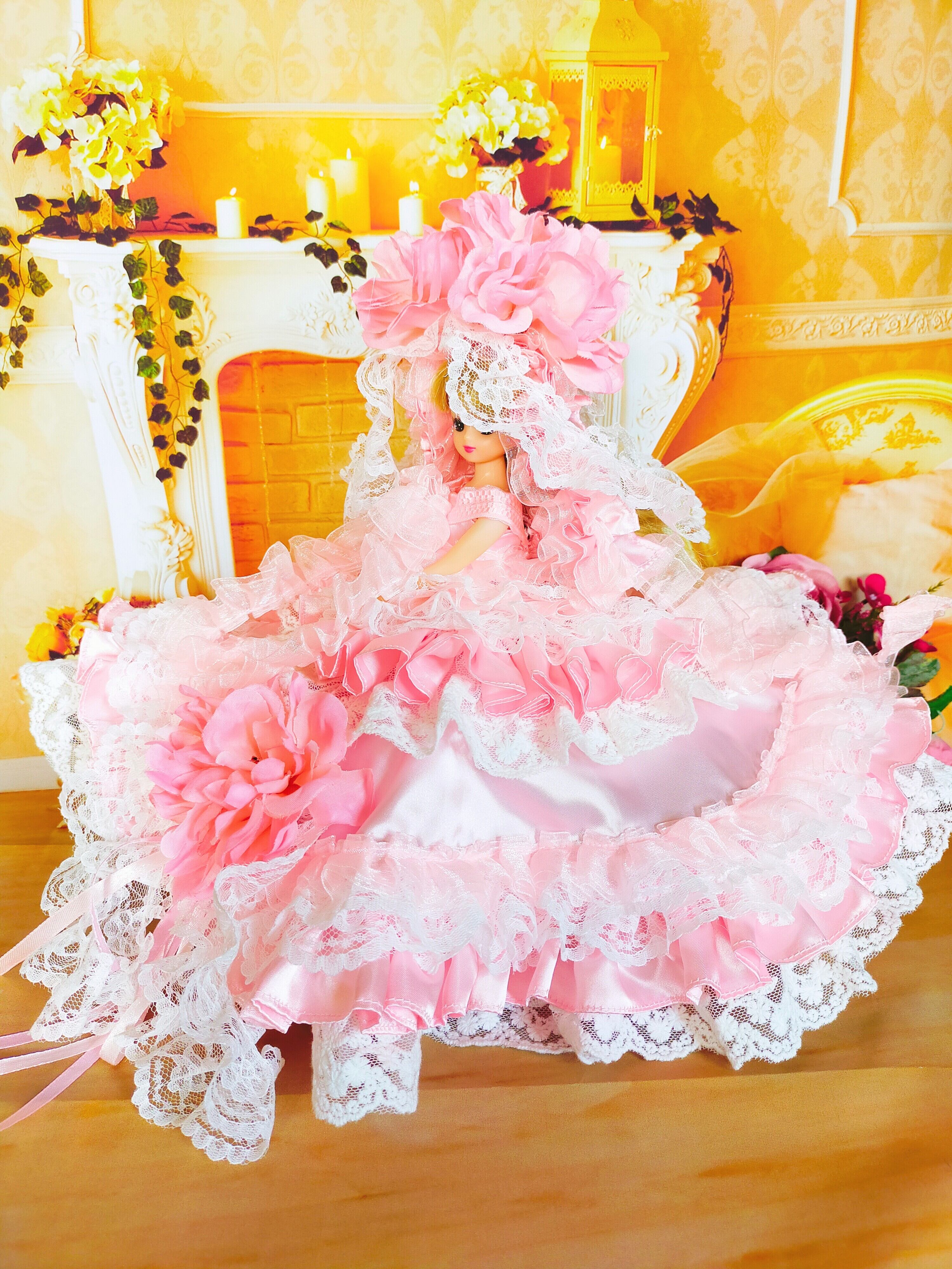 リカちゃん サイズ 手作り 服 淡い 優しい 花 ピンク プリンセス ドレス グラース・ピンク ♡♡贈答品にも♡♡