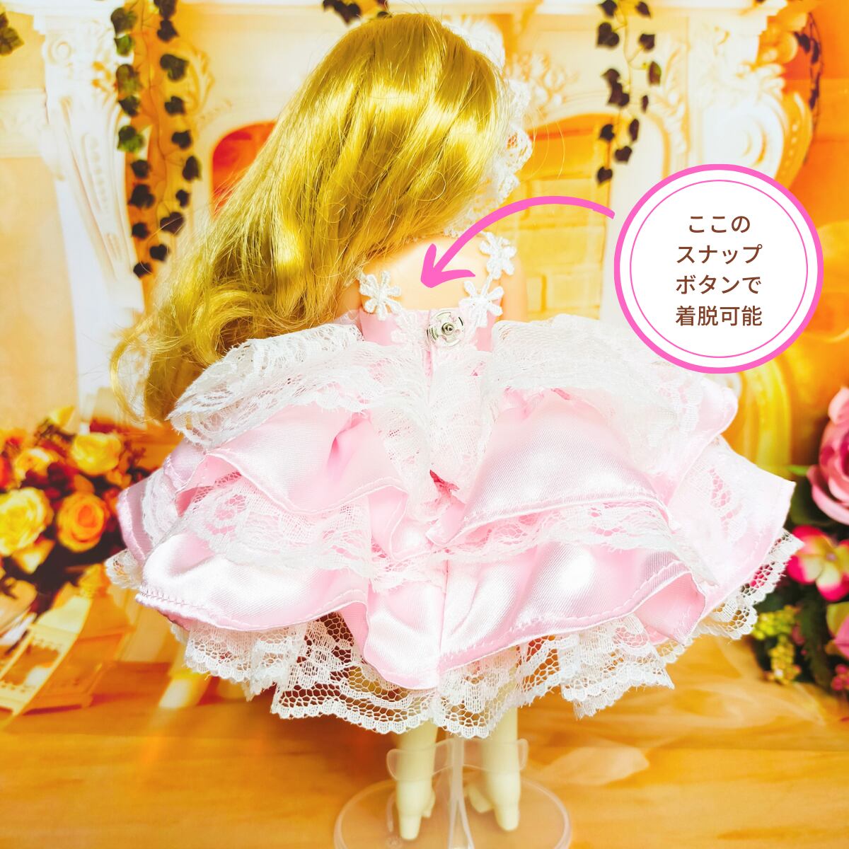 ☆ドレスは背中のスナップボタンで着脱ができます。
