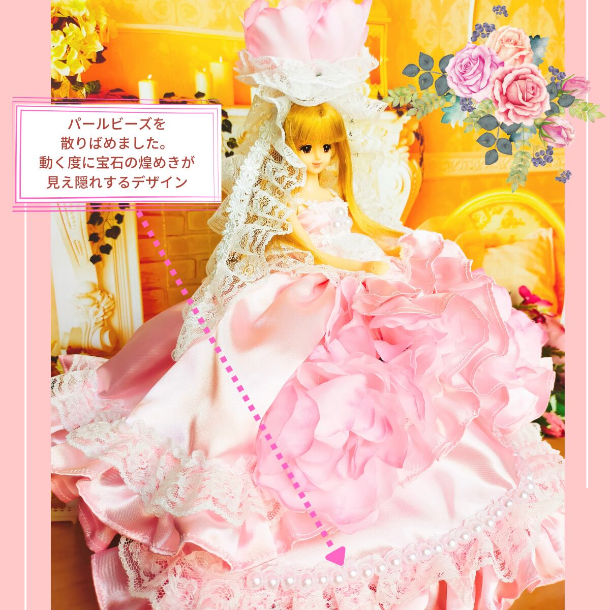 上品なパールビーズを散りばめました。