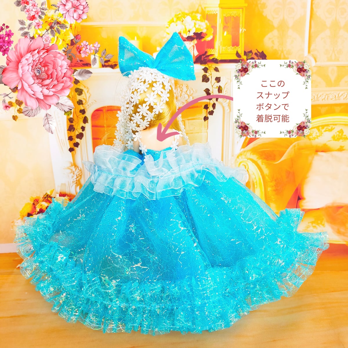 リカちゃんサイズ 水の王女ドレス ハンドメイド服 ドール服 人形服 ドールドレス ♡エドウィージュ・L♡