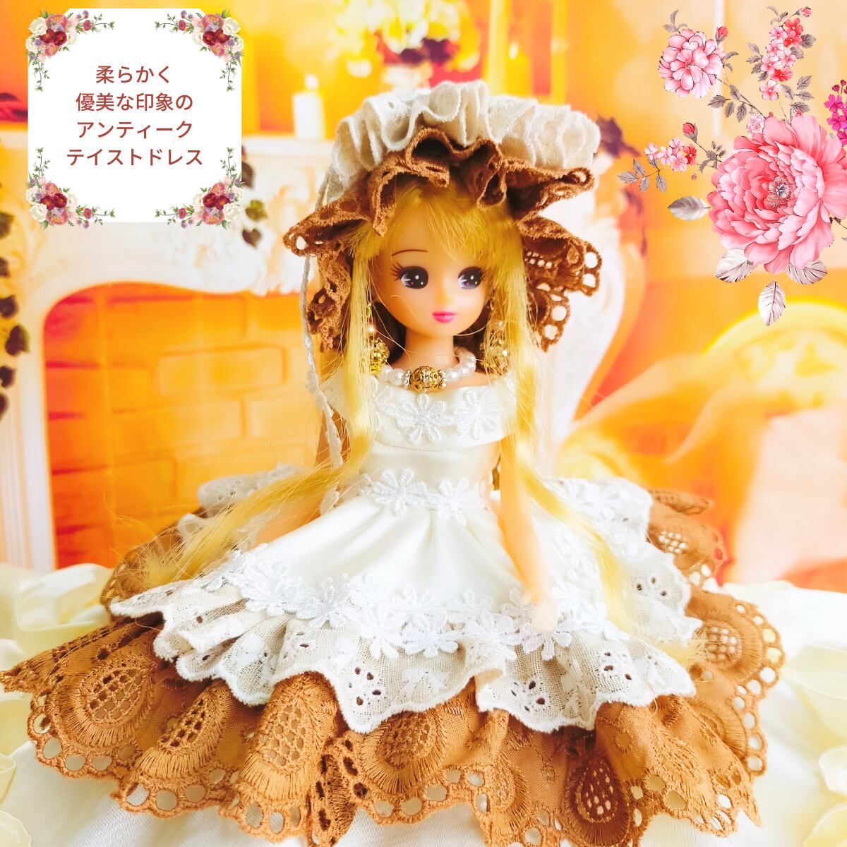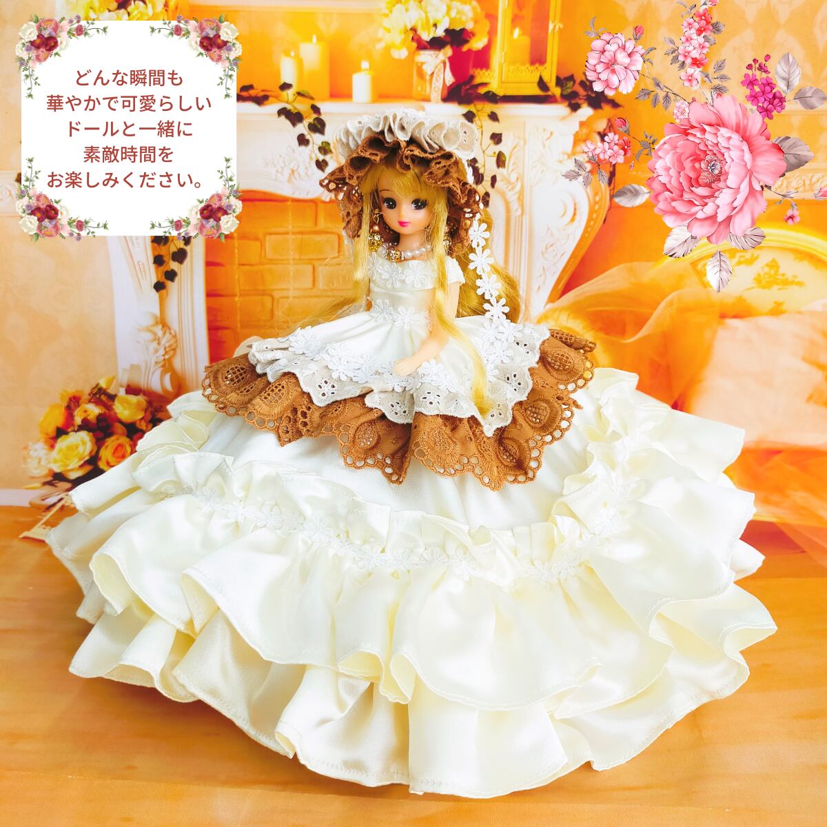 リカちゃんサイズ ドレス クリーム色 ハンドメイド服 ドール服 人形服 ドールドレス ♡マカロン♡