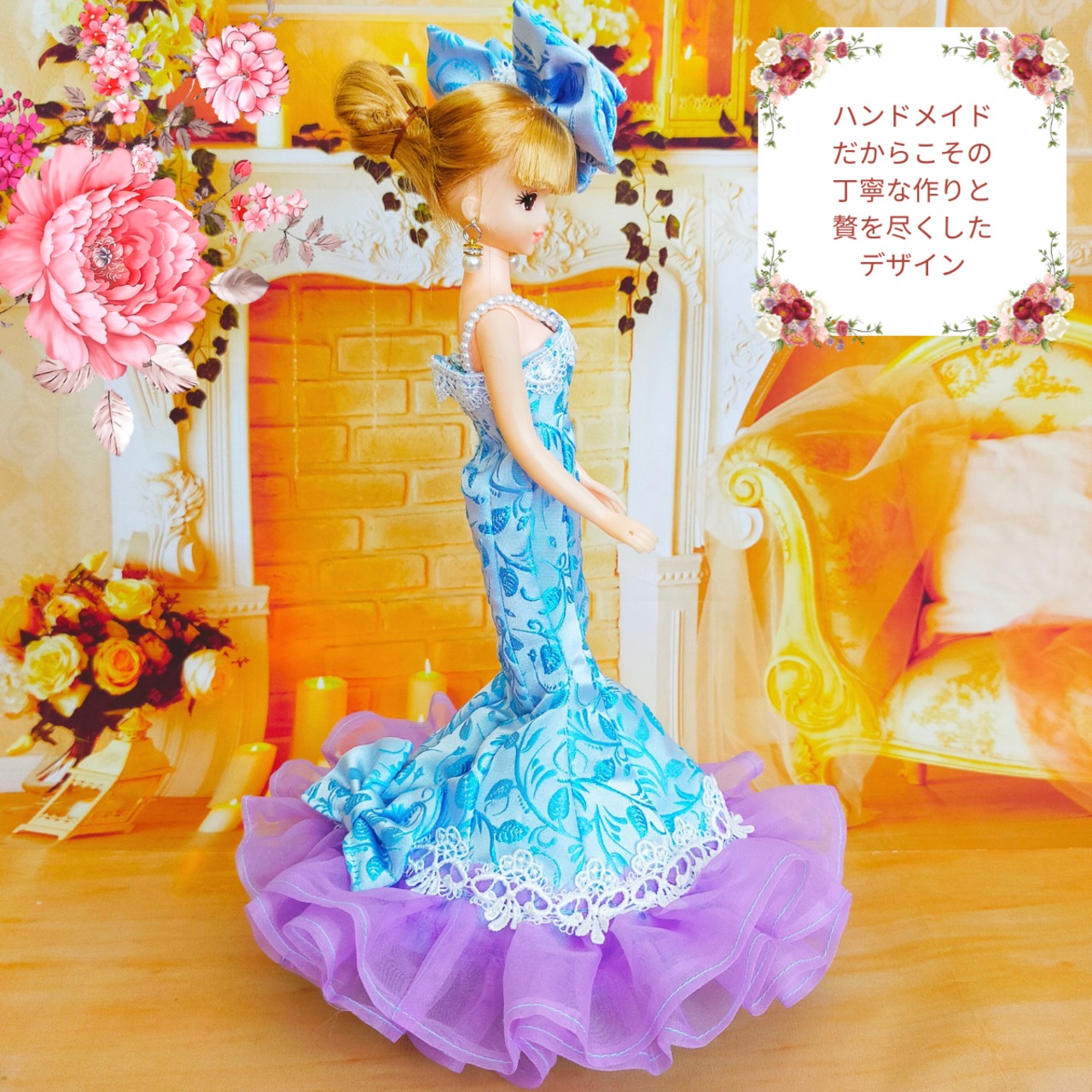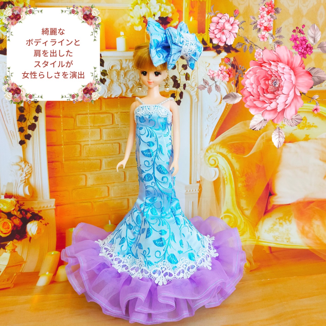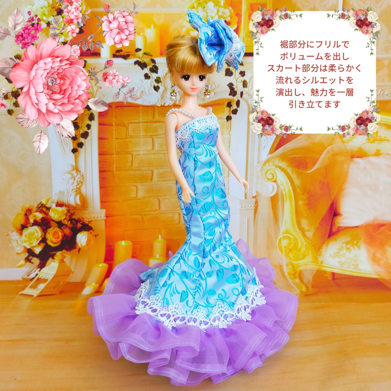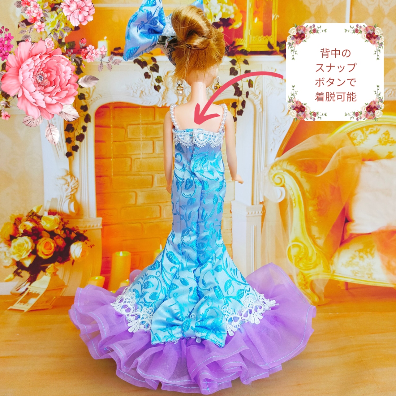 お値下げ3900円→2500円 ジェニーサイズ マーメイドライン 人魚姫ドレス ハンドメイド ドール服 人形服 ドールドレス ♡エマ・J♡