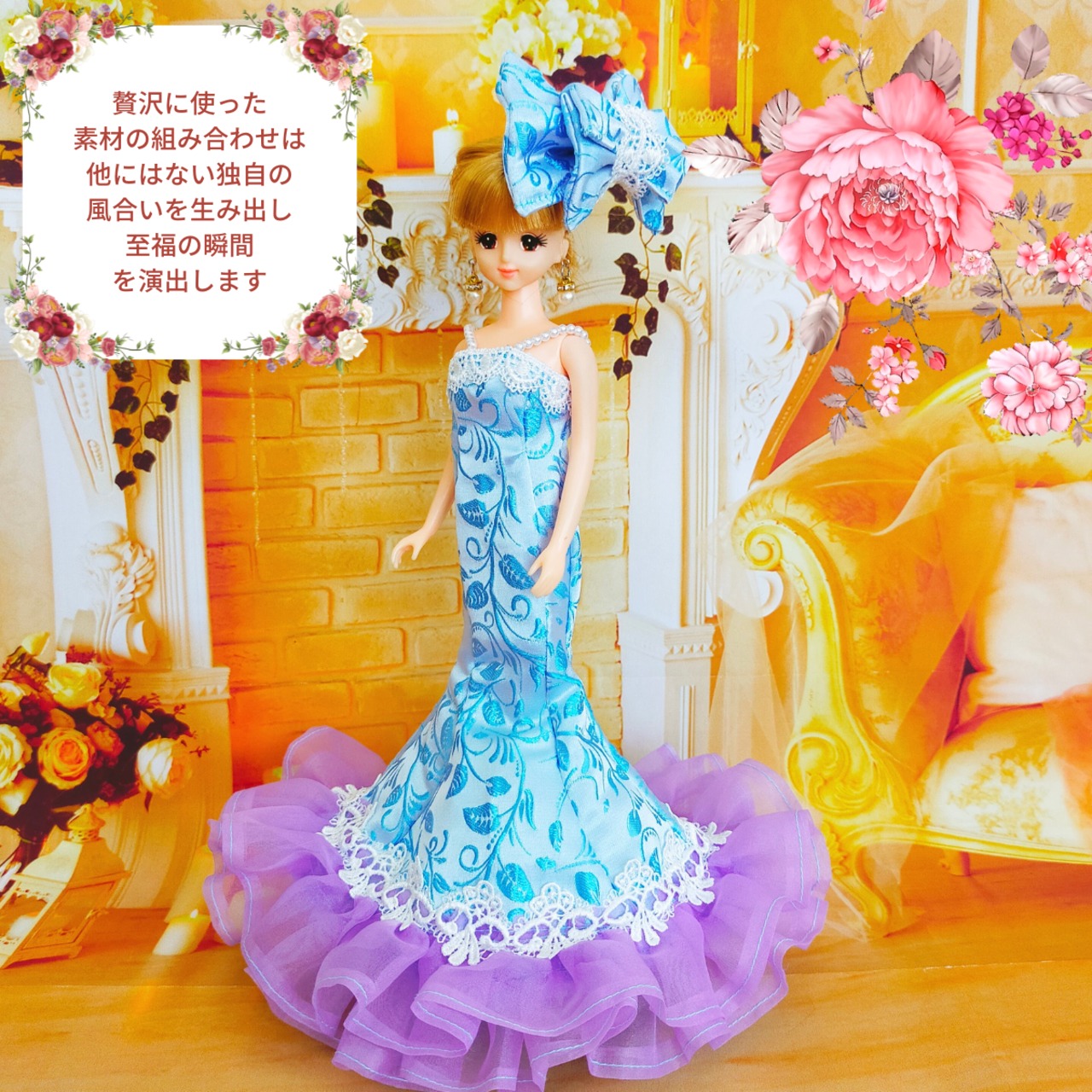 ハンドメイドの温もりとこだわりが詰まった、マーメイドドレスで、ドールと共に素敵なひとときをお過ごしください。